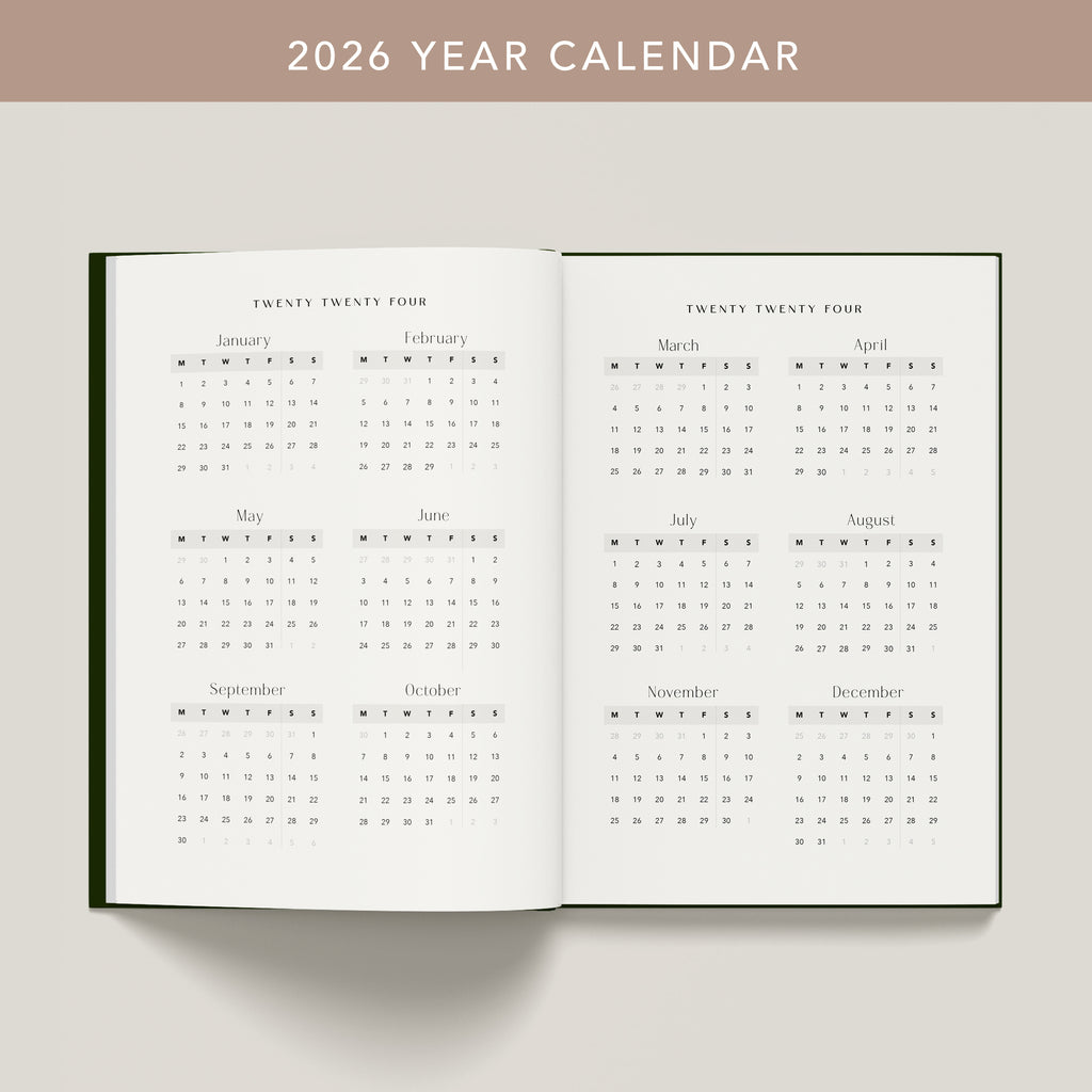 Our 2026 Planner is the most comprehensive and thoughtfully designed diary you’ll need for the year ahead. Crafted with a premium vegan leatherette hardcover, beautiful 110gsm FSC-certified ivory pages, matching satin bookmarks, and packed with meaningful prompts and planning tools — it’s designed to help you organise, reflect, and make every day a little better.